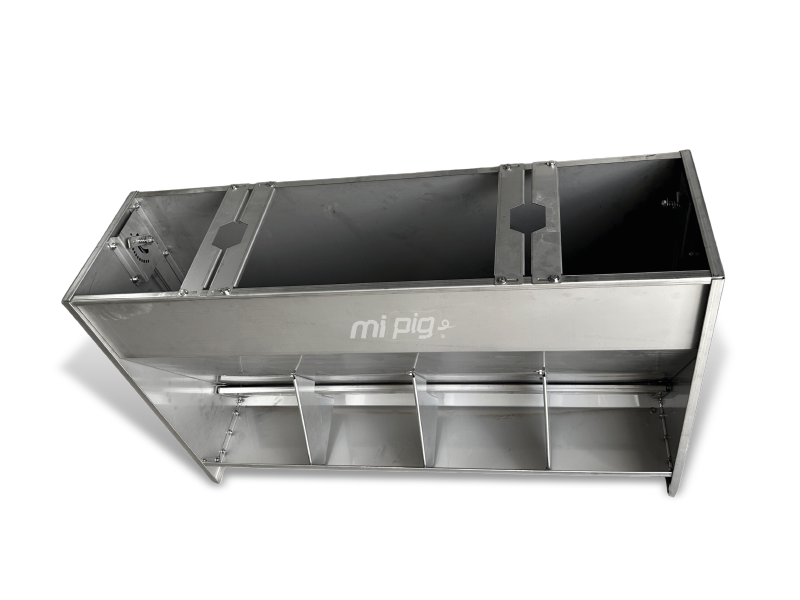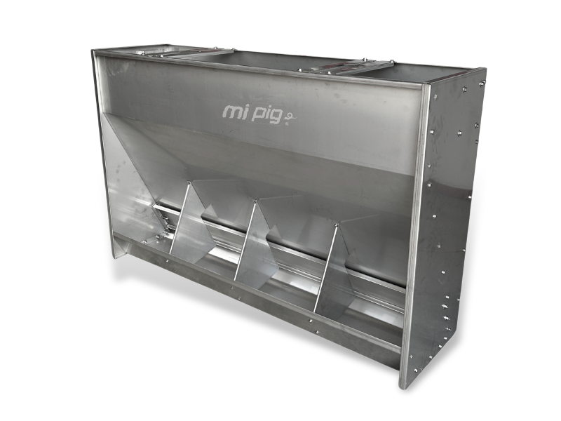 El comedero de engorde de un solo lado está diseñado para la etapa de crecimiento y finalización en producción porcina. Cuenta con 4 bocas de un solo lado.