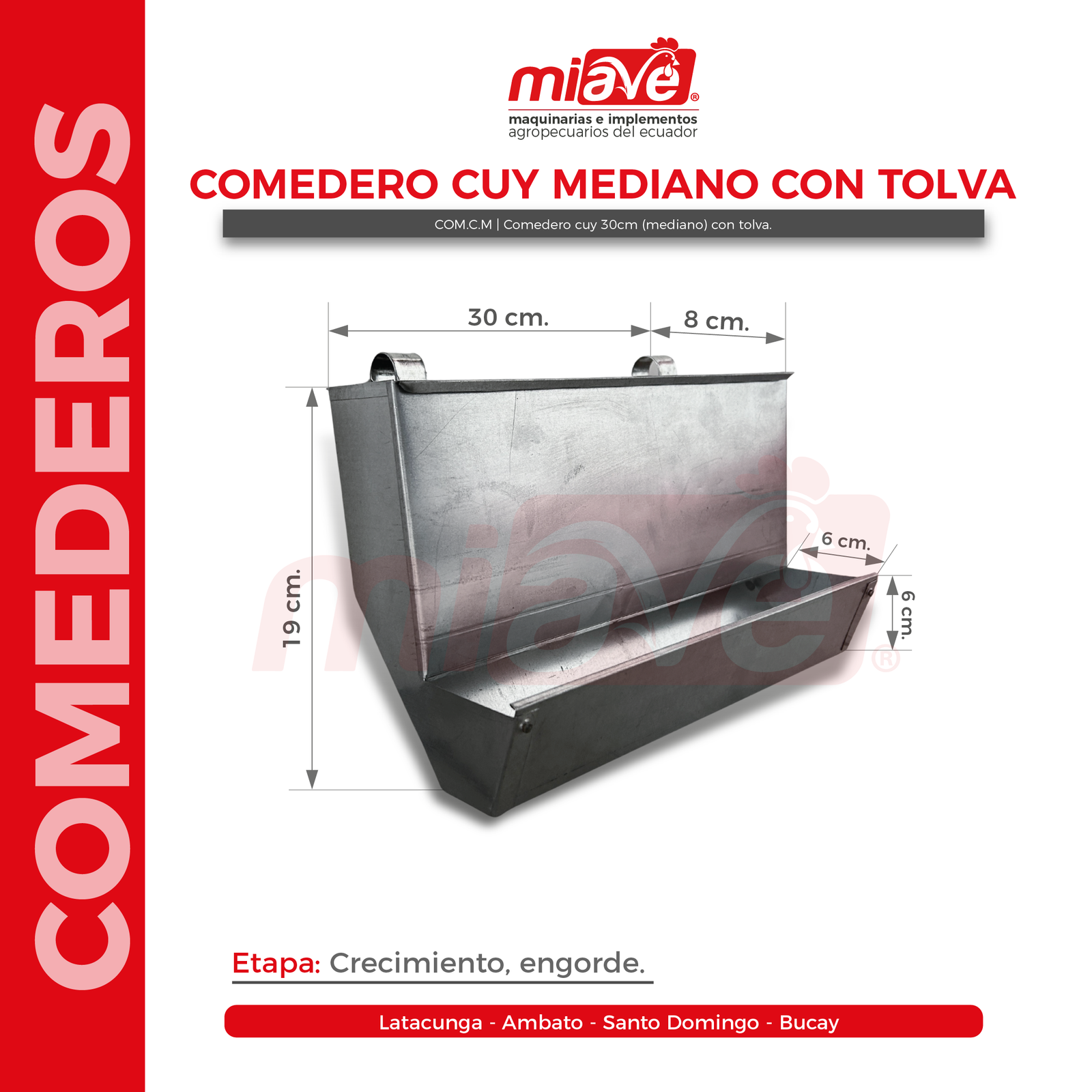 CÓDIGO: COM.C.M | Comedero cuy 30cm (mediano) con tolva.