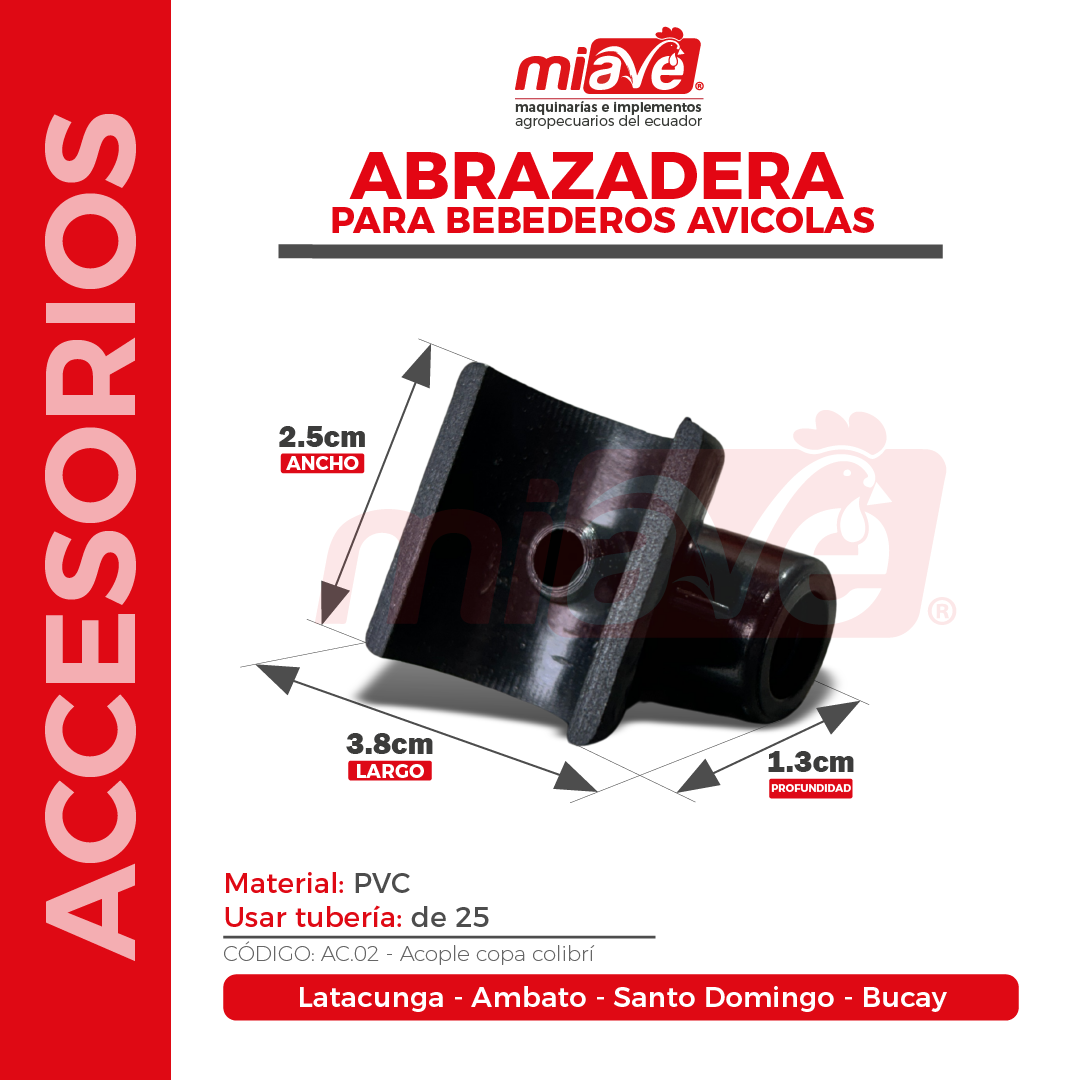 Abrazadera o conector plástico en forma de T diseñado para integrar bebederos automáticos en líneas de agua para aves de corral. Facilita una distribución eficiente y limpia del agua, adaptándose a diferentes sistemas de crianza.