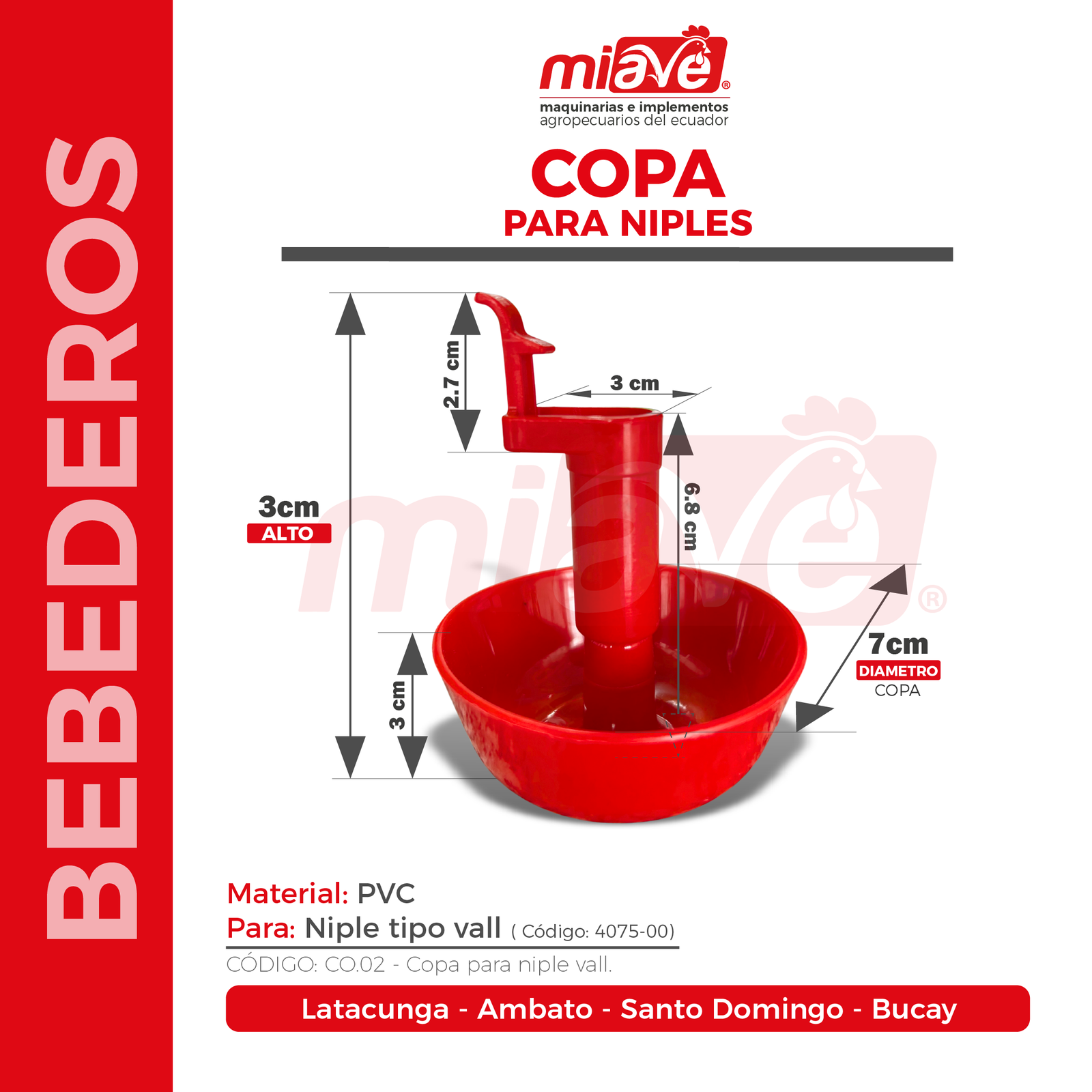 La copa para niple Vall es una solución práctica, económica y fácil de instalar para suministrar agua limpia a aves de corral. Su diseño incluye una bandeja recogegotas que evita derrames, reduce el desperdicio y mantiene el área seca y más higiénica.